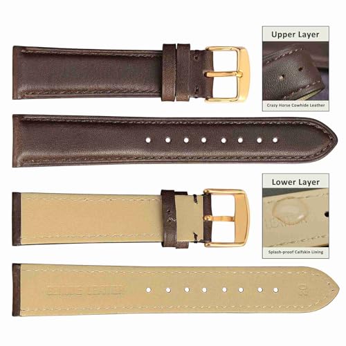 WOCCI 18mm Vintage Leather Watch Band for Men and Women, Gold Buckle (Dark Brown)