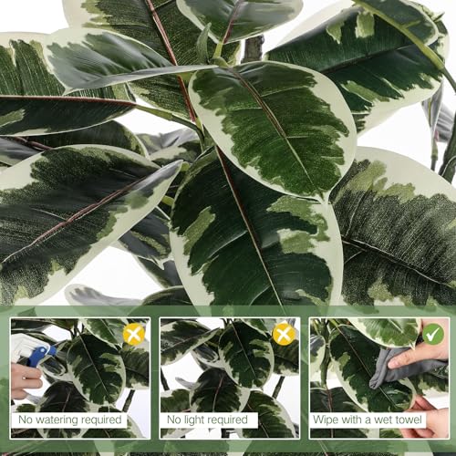 Easy to Maintain: this faux rubber plant Indoor is very easy to maintain; It does not require watering, pruning and sunlight. You only need to wipe off the dust on the surface with a damp cloth occasionally, and it can always stay bright