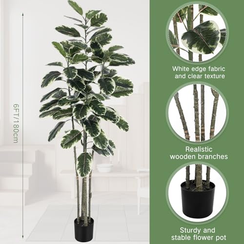 Features: 79 Rubber leaves: This 6Ft tall fake plant has 79 large vibrant leaves with white mottled arching feathers and clear leaf textures, making this artificial rubber tree a timeless home decor for all seasons that will definitely make you feel the presence of nature. Perfect gift: For those who love to touch in addition to visual appreciation, this 6Ft tall faux rubber tree plant is a treasure and can become a lasting gift for friends and family on special days. Basic information: Quantity: 2 Material: silk cloth, metal Color: green, white Size: Height: 6 feet Package included: 2 x Artificial rubber tree plants Notes: The size may vary slightly due to manual measurement. The color of the item may vary slightly from the picture due to screen display.