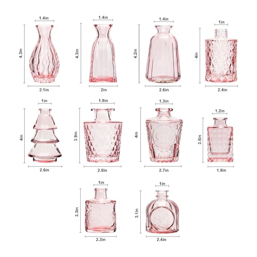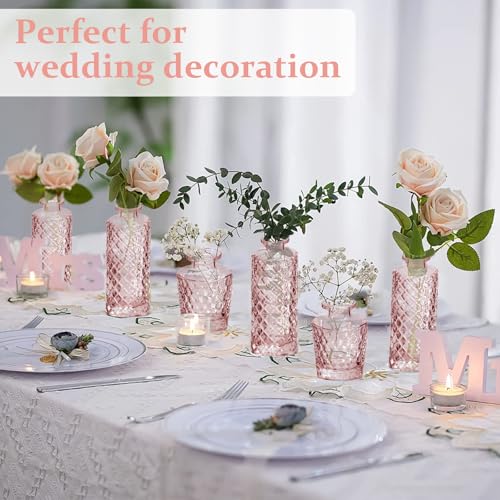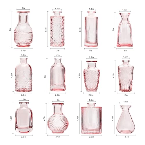 Elegant Vintage Style: Add timeless beauty to any space with our RUCKACE Pink Flower Bud Vases.These assorted mini vases showcase a delicate vintage design with charming etched details,perfect for settings from formal wedding centerpieces to casual home decor.Ideal as glass vases for centerpieces,each small flower vase adds a touch of elegance wherever you place it.